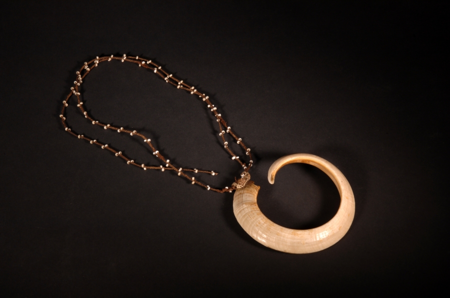 Vous êtes ici : Accueil / Publications du département / UE museologie / Paléomonnaies d'Afrique et d'Océanie / Dents pour dents... / Collier pendentif avec dent de cochon